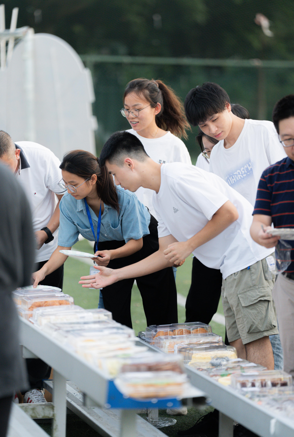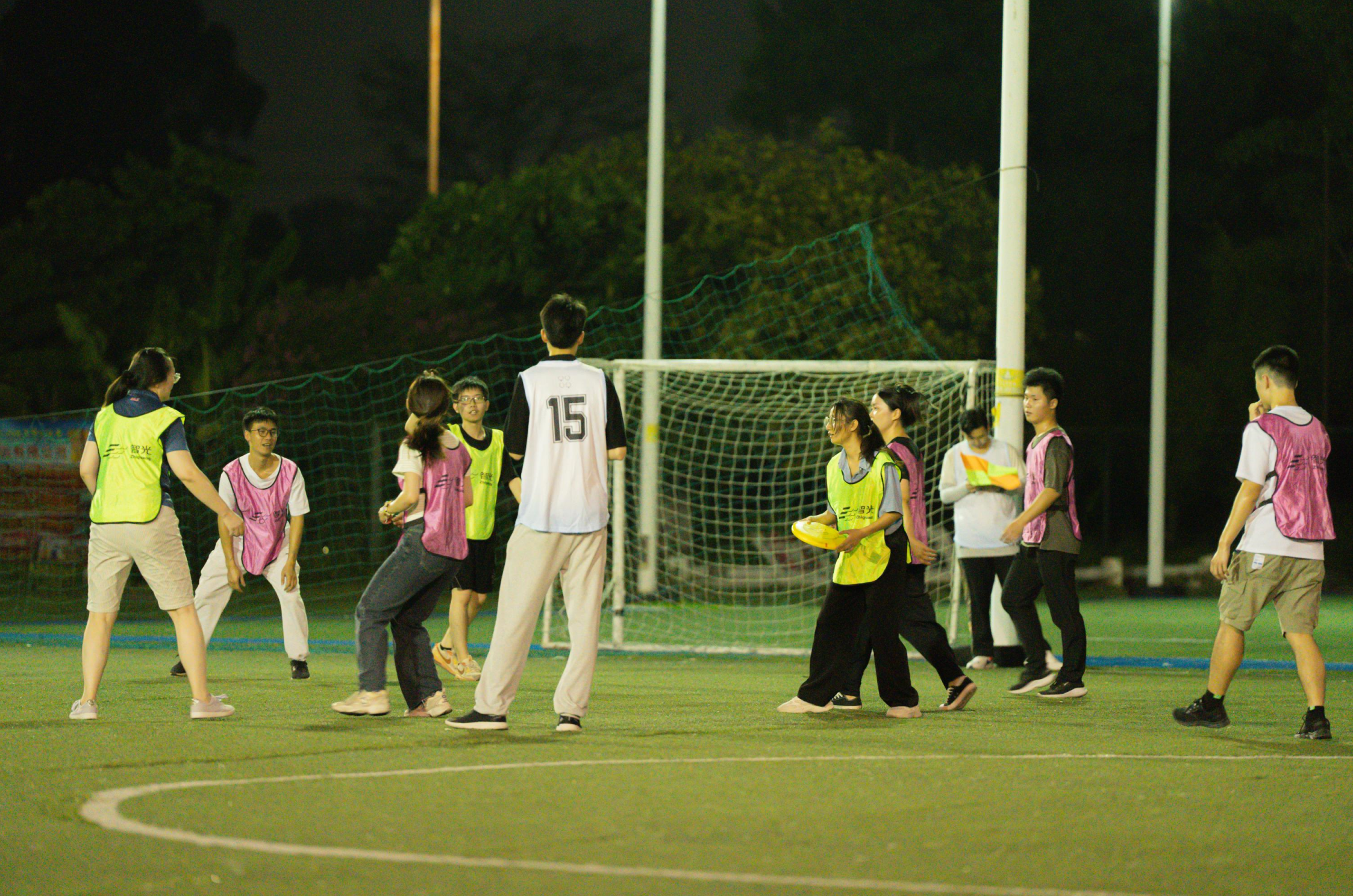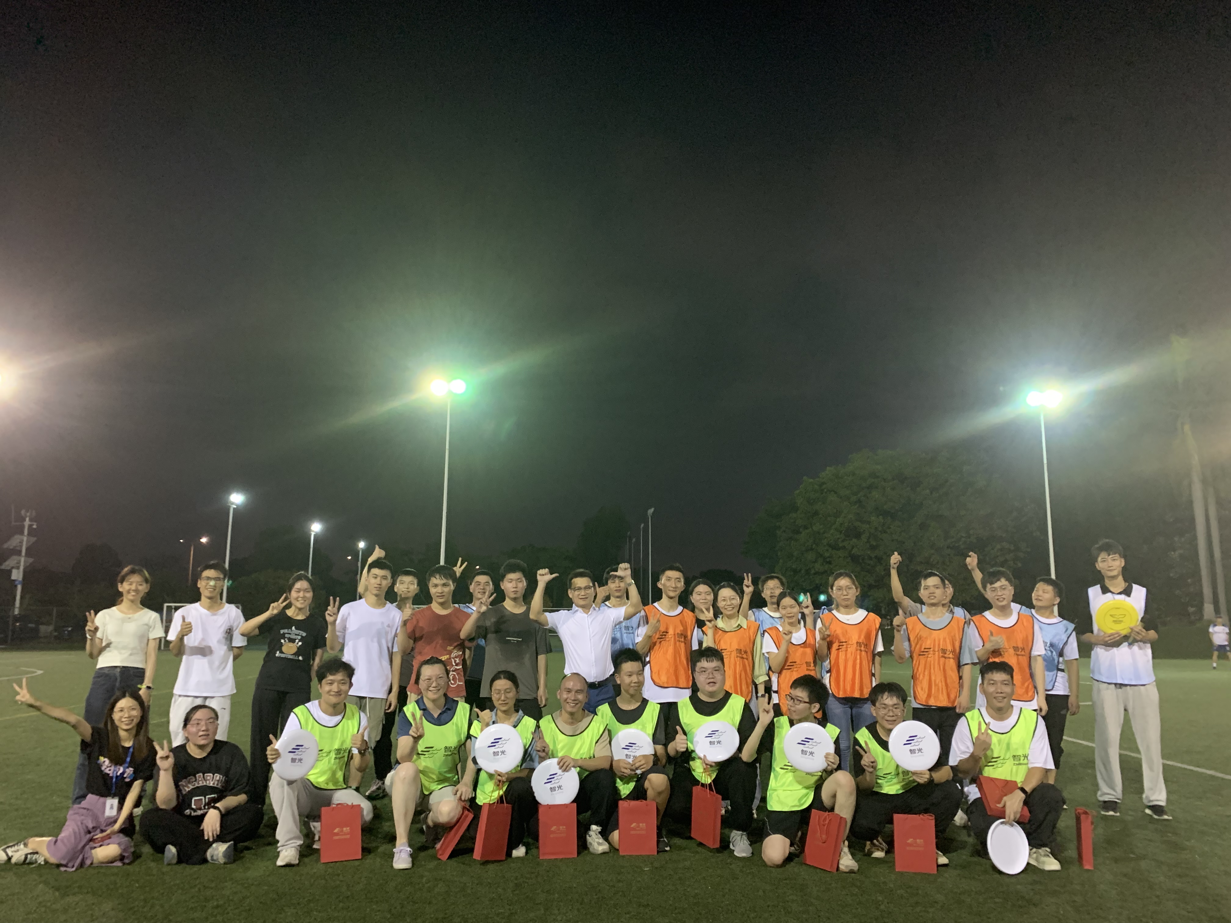 飛盤活動開始前,在教練的引導下,大家開始舒展腰身、活動筋骨,為暢享飛盤運動做好充分的準備。在明確比賽規則及規范動作后,參與活動的員工們被分為四隊,分別為紅隊、藍隊、綠隊及橙隊,在教練的指導下進行了激烈而歡樂的比賽。體育場上,飛盤往返的弧線盡情交織,青春的朝氣蓬勃煥發,汗水在夕陽下揮灑,每個人都樂在其中。經過激烈角逐,最終綠隊斬獲冠軍。