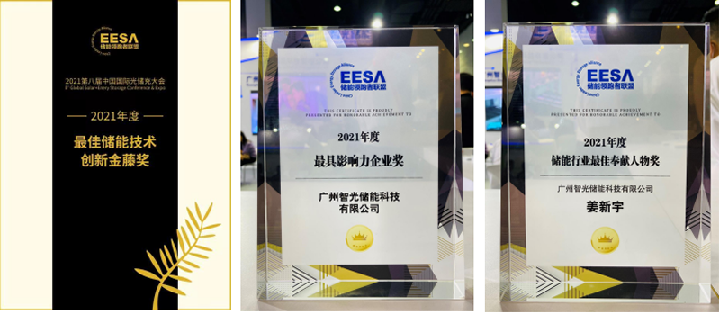 本次大會上,智光儲能獲得“2021年度最佳儲能技術(shù)創(chuàng)新金藤獎”,“2021年最具影響力企業(yè)獎”;廣州智光電氣股份有限公司副總裁、總工程師兼智光儲能董事長姜新宇先生榮獲“2021年度儲能行業(yè)最佳奉獻人物獎”。