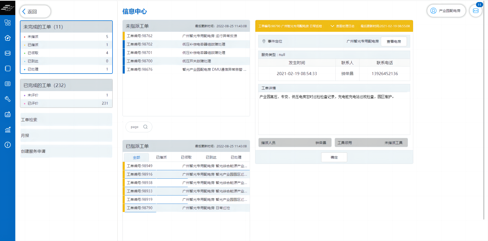 實(shí)時(shí)推送設(shè)備事件及告警信息至APP或短信,為用戶提供全天候無延遲的設(shè)備監(jiān)護(hù)。推送由用戶設(shè)置的閾值觸發(fā),可在觸發(fā)的同時(shí)聯(lián)動拍照或錄像。事件和告警信息可以與工單系統(tǒng)對接,進(jìn)行生成、派送、處理、關(guān)閉工單,掌握事件處理進(jìn)度及人員工作安排。